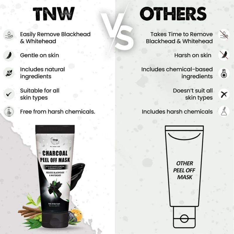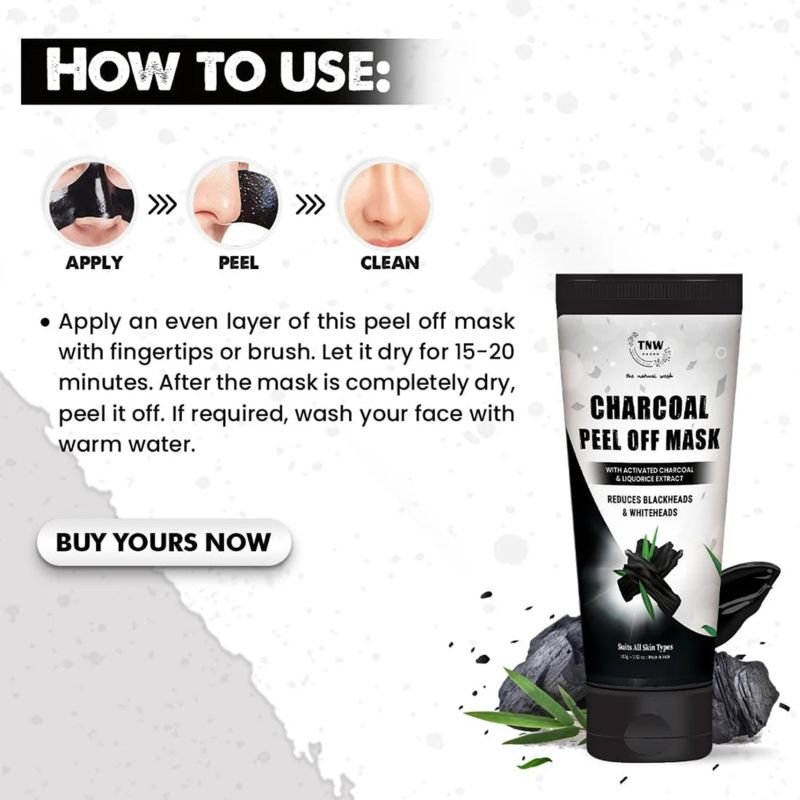 There’s no wonder that well-exfoliated skin glows, hence, introducing TNW Charcoal Peel Off Face Mask that gives your skin a non-oily glow and a pore-less appearance. It Detoxifies your skin by getting rid of whiteheads and blackheads. Supercharged with ingredients like Activated Charcoal, Neem Extract, and Liquorice Extract, this peel-off mask unclogs the pores, controls excess oil, and removes impurities, tanning, whiteheads, and blackheads while mattifying your skin for a non-oily glow. It also has Orange Peel Extract and Tea Tree Extract that helps to tighten the pores while deeply cleansing the skin, making it soft, clean, and fresh. Suitable for all skin types, this face mask is a perfect addition to your weekly skincare routine. So go ahead, peel your impurities and feel the soft, radiant skin!